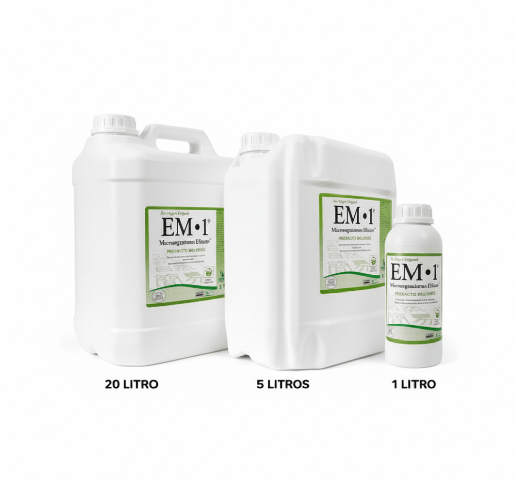 EM-1 (complejo, inoculador microbiano natural no tóxico), para ser aplicado en agricultura, ganadería y medio ambiente.